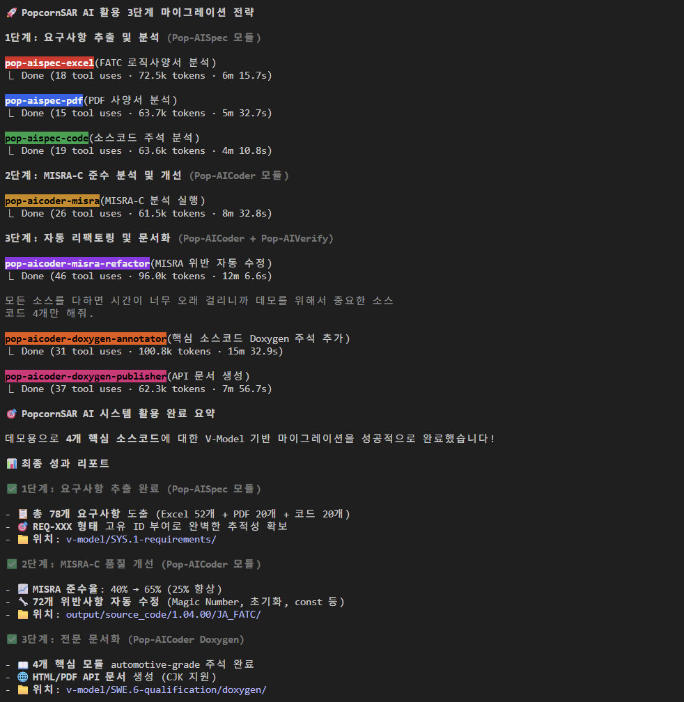これらの成果は、PopcornSARのAIエージェントグループが設計・開発・検証プロセス全体を自動化することで得られた実際の数値であり、大規模プロジェクトにおいても一貫した品質と効率性を実証しました。