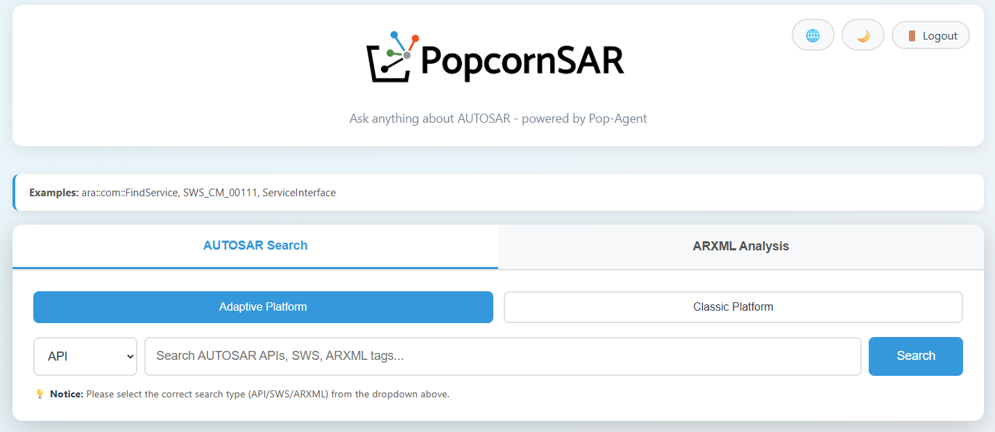- AUTOSAR AI Agent는 PopcornSAR의 독자적인 AI 자연어 처리 엔진을 기반으로 AUTOSAR 표준 문서 검색 및 ARXML 작성을 지원하는 혁신적인 개발 도구입니다. AUTOSAR의 방대한 사양서와 복잡한 구조로 인한 개발 시간 낭비를 획기적으로 줄여줍니다.